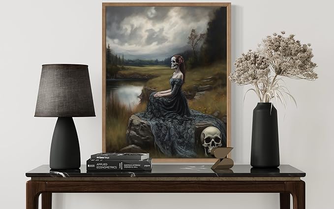 Widow Ghost Poster Art Print, Halloween Scary Vintage Wall Art Academia Spooky Painting Decoration for Horror Prints, Gothic Posters Bedroom Decor 89 (Widow Ghost, 11 x 14 inches, Wood Frame)