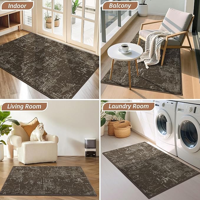 BEQHAUSE Dirt Trapper Door Mat 20"x32" Non-Slip Door Mats Washable Entryway Rugs Stain Resistant Doormat Absorbent Welcome Floor Mat for Front Back Door, Muddy Wet Shoes & Paws,Brown