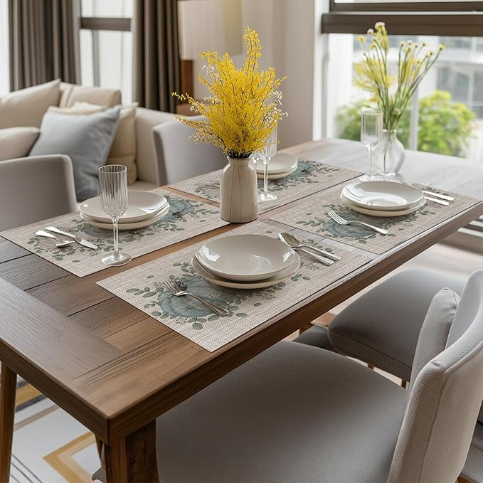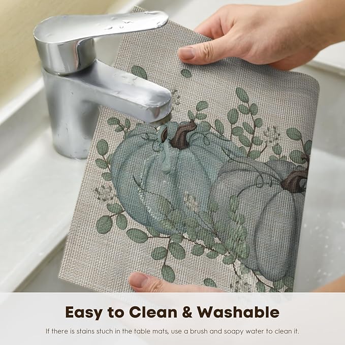 - Easy To Clean:The washable placemats simply wipe with soap,water and a soft sponge or cloth.Scrub stubborn stains with a soft bristle-brush and a bleach-based cleanse.
