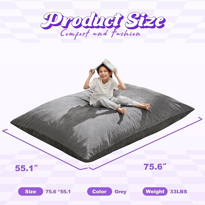 - Easy to Install: It is compressed into a small package and please leave it for 2 days to recover from opening the package, put the cover on and shaking it and fluffing it occasionally, then large bean bag will take in air and expanded beautifully. Oversized bean bag chairs for adluts also comes in various colors, allowing for personal customization to suit your decor.