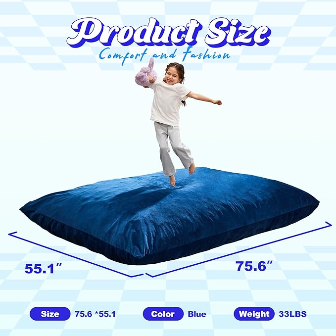 - Memory Foam Bean Bag Chair: The 3-in-1 giant bean bag chair stands out with its high-density memory foam filling, it can bounce back quickly, not only provide comfort but also support. The thickness of the bean bag is up to knees when you lay it down flat.