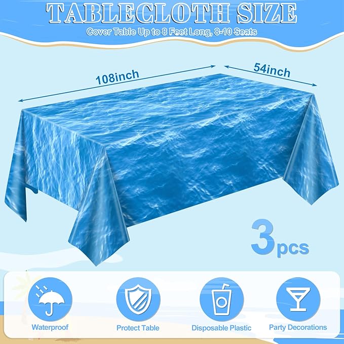- Package Included: You will receive 3 plastic tablecloths with your ocean waves design , which sends out a strong theme vibe, decorating for beach pool under the sea party