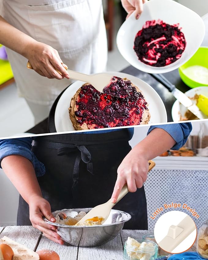 Cooking Spoon and Scraper for Nonstick Cookwares, Great for Cooking and Serving Durable BPA-Free Matte Silicone, Wood Handle Multifunction Spoon for Mixing, Scoop, and Scrape (KHAKI)