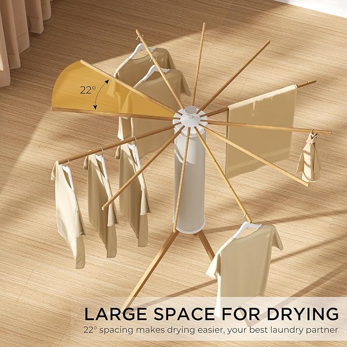 - 【Efficient & Stylish】Every home needs the thoughtful, multipurpose tripod clothes drying rack since it is both practical and fashionable. It is stable because to its tripod construction, and it is easy to fold up for storage; A real collaborator when it comes to getting laundry.