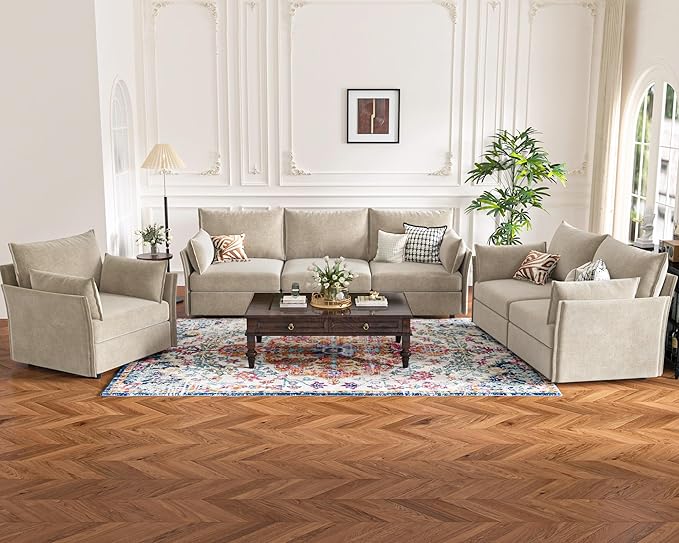 - ๐ก Premium Chenille Fabric - The modern sofa is upholstered in premium chenille fabric that feels luxurious to the touch, offering both comfort and durability. The material is not only soft and inviting but also non-pilling and won't stain, ensuring long-lasting quality.