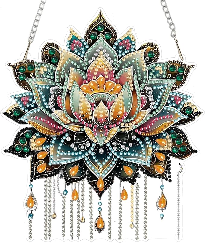SENQAO Lotus Diamond Art Hanging Kit for Adult, Special Shaped Rhinestone, Double Sided DIY Acrylic Diamond Art Painting Window Pendants Home Garden Wall Hanging Kits Hanging Ornament