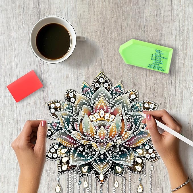 - Diamond Painting Kit Include: Package comes with enough colorful diamonds, diamond hanging plate x1, iron chain x1, point diamond pen x1, cube x1, diamond tray x1, red glue clay x , with beautifully crafted boxes, providing everything needed for art completion