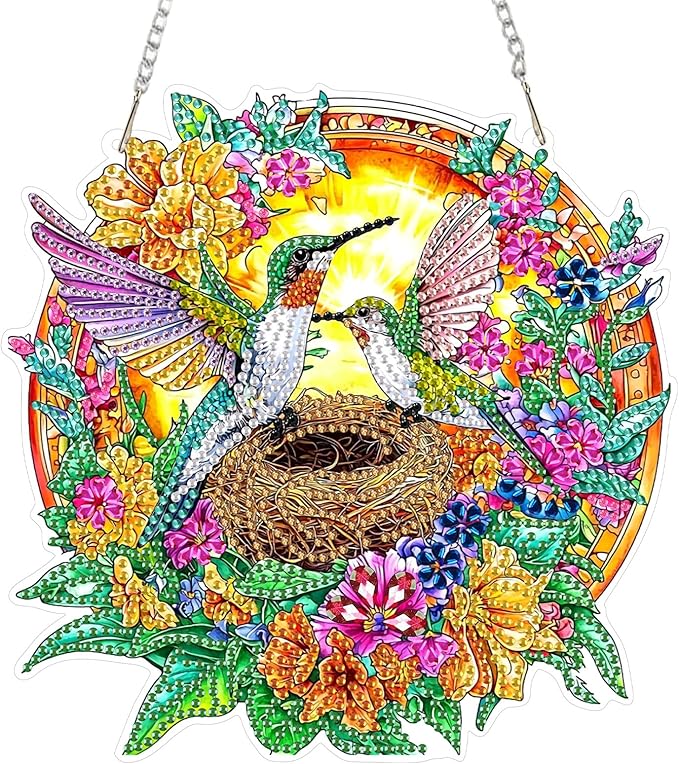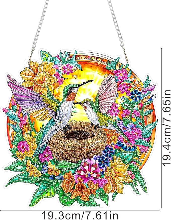 SENQAO Hummingbird Diamond Art Hanging Kit for Adult, Special Shaped Rhinestone, Double Sided DIY Acrylic Diamond Art Painting Window Pendants Home Garden Wall Hanging Kits Hanging Ornament