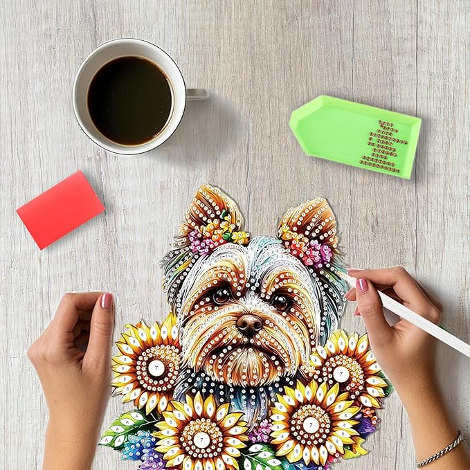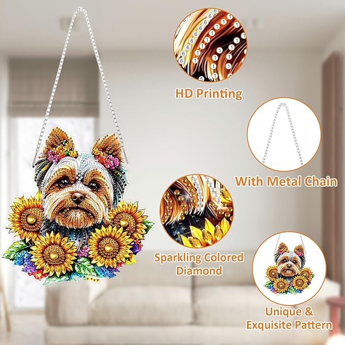 SENQAO Dog Diamond Art Hanging Kit for Adult, Special Shaped Rhinestone, Double Sided DIY Acrylic Diamond Art Painting Window Pendants Home Garden Wall Hanging Kits Hanging Ornament (Sunflower)