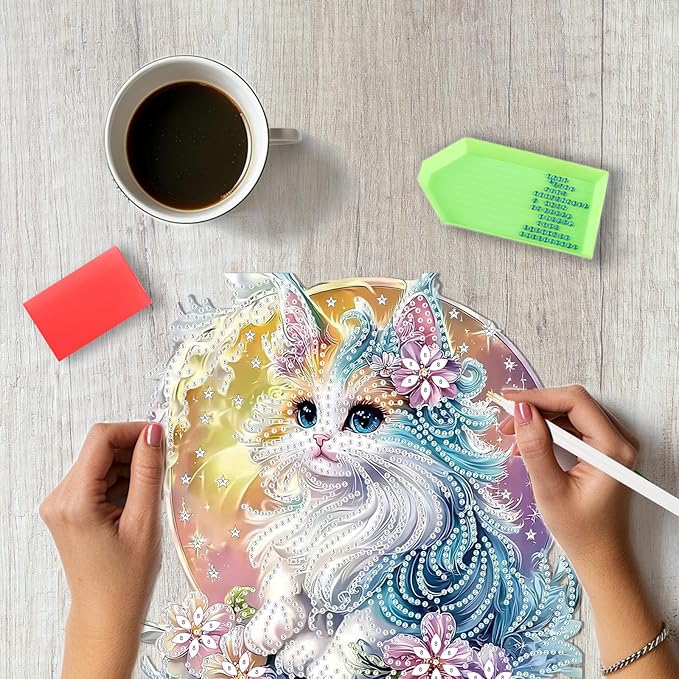 SENQAO Cat Diamond Art Hanging Kit for Adult, Special Shaped Rhinestone, Double Sided DIY Acrylic Diamond Art Painting Window Pendants Home Garden Wall Hanging Kits Hanging Ornament