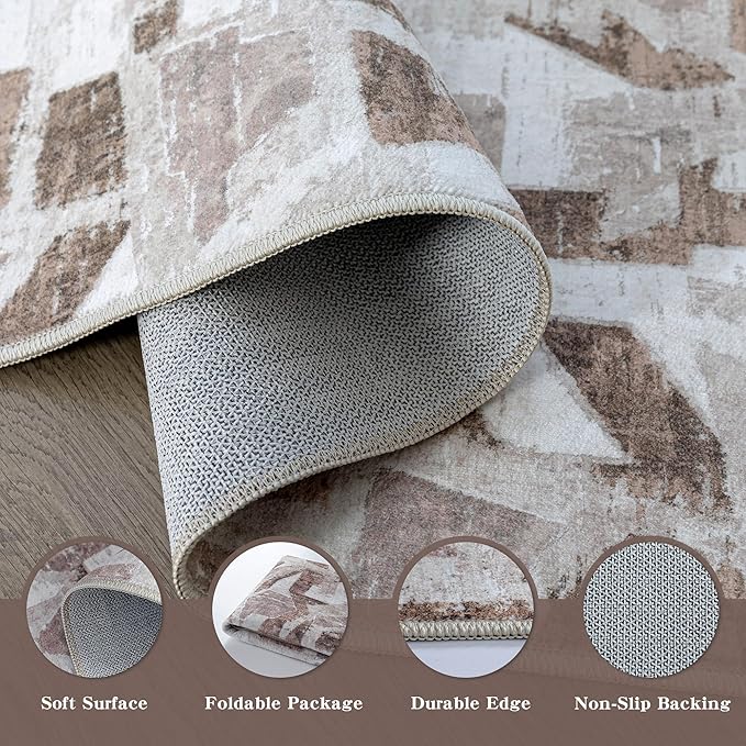 - Non-Slip Backing: Designed with textured grip technology, this area rug stays securely anchored on hardwood, tile, or laminate floors. Perfect for homes with kids, pets, or elderly family members, it resists shifting during daily activities or furniture placement.