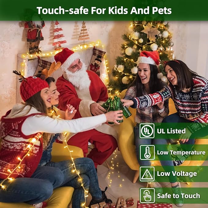 - Built for Families & Energy Savings: Many parents worry about kids or pets touching led string lights. That’s why our UL-certified low-voltage LEDs stay cool, even after hours of use. Safe for indoor trees, mantels, or kids’ bedrooms. Plus, the lights use 90% less energy than traditional bulbs—keeping your electric bill low while still giving you the brightest display in the neighborhood