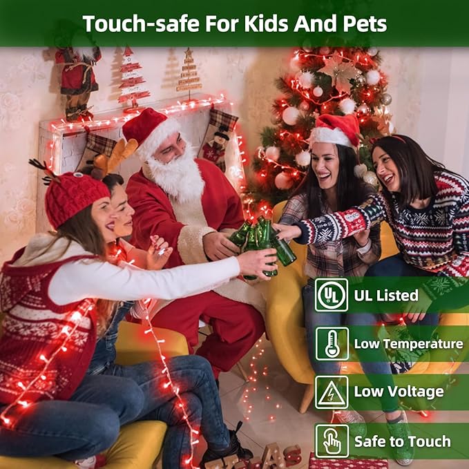 - Built for Families & Energy Savings: Many parents worry about kids or pets touching led string lights. That’s why our UL-certified low-voltage LEDs stay cool, even after hours of use. Safe for indoor trees, mantels, or kids’ bedrooms. Plus, the lights use 90% less energy than traditional bulbs—keeping your electric bill low while still giving you the brightest display in the neighborhood