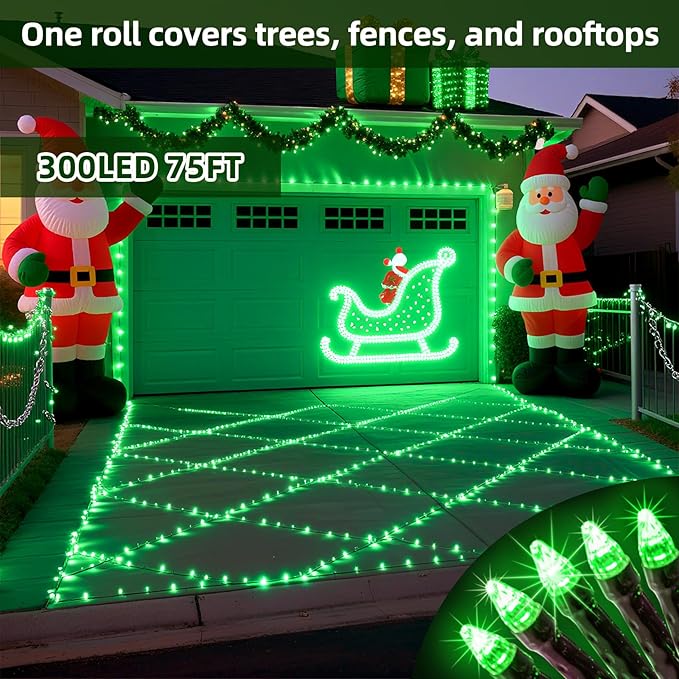 - Perfect Size for Everyday Decorating: At 75ft with 300 LEDs in green, these Christmas string lights add a refreshing, nature-inspired touch to your décor. Just right for balconies, porches, stair railings, mantels, or a 7–9ft Christmas tree. Perfectly balanced for cozy spaces. Connect up to 3 sets (225ft, 900 LEDs total) to extend the fresh holiday vibe across fences, patios, or the front of your home.