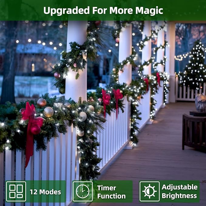 - Stress-Free Timer & Memory: No one wants to reset their Christmas tree lights every night. That’s why these outdoor string lights include a built-in timer (6 hours on, 18 hours off) so they turn on automatically at dusk and save energy while you sleep. The memory function recalls your last mode, so your favorite glow is ready every evening. Just set it once and enjoy your holiday decorations hassle-free, whether you like a gentle steady-on or sparkling party mode