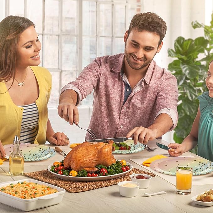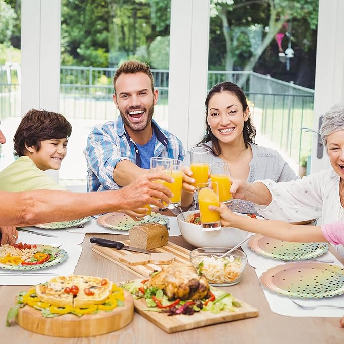 • 【FOR EVERY EVENT】: Elegant colorful paper plates for party is great for everyday and party use, like cocktail evenings, BBQ parties, family gatherings, bar decorations, picnics, elegant bridal showers, afternoon tea parties, birthdays, holiday celebrations, Christmas, New Years, Graduation Parties, and other occasions and events.