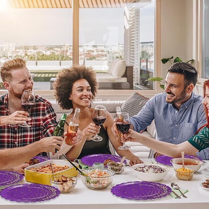- 【FOR EVERY EVENT】: Elegant purple plates for party is great for everyday and party use, like cocktail evenings, BBQ parties, family gatherings, bar decorations, picnics, elegant bridal showers, afternoon tea parties, birthdays, holiday celebrations, Christmas, New Years, Graduation Parties, and other occasions and events.
