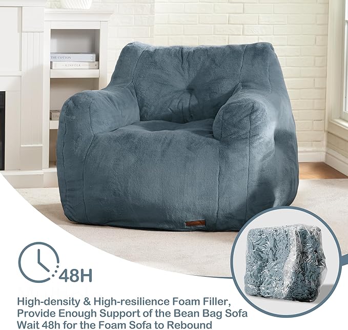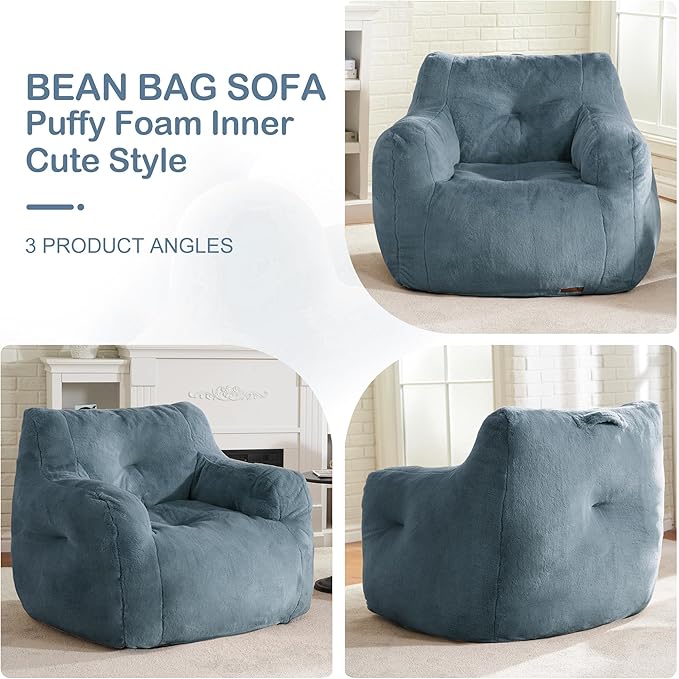 Hobestluk Bean Bag Chair for Adult Small Bean Bag Chairs with Arms Furry Beanbag Chair with Foam Filler Stuffed Bean Bag Sofa for Reading in Bedroom Living Room and Dorms (Blue Grey)
