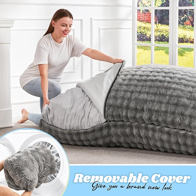 - Removeable Cover: The bubble cover of our bean bag chair for adults is durable and easy to clean, which is great for a household with pets. Covers can come off so you can just put it into the washing machine to keep fresh. It can withstand regular use without showing significant wear and tear. Additionally, the convenience of a removable and washable cover adds to its appeal, making bean bag couch an excellent choice for combining style, comfort, and practicality in any living space.