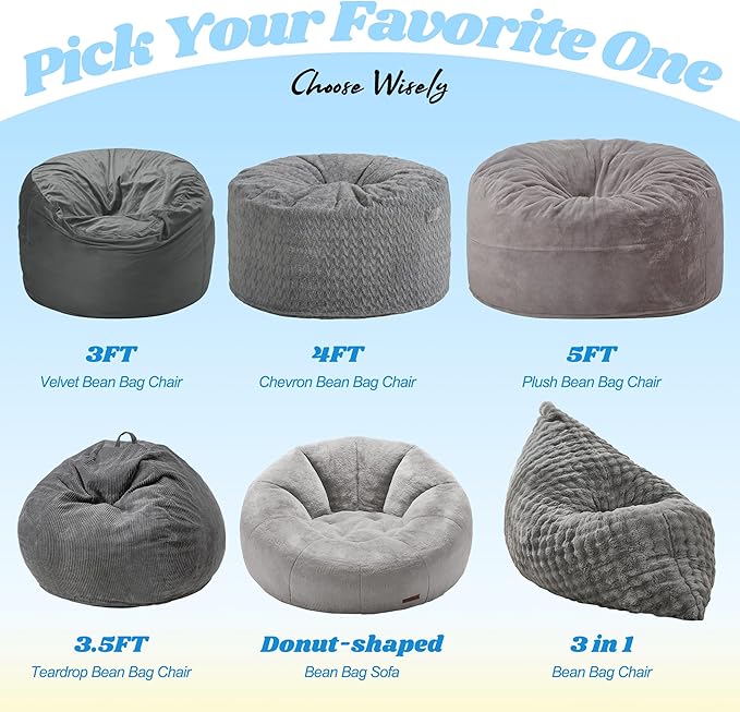 - 3 in 1 Convertible Bean Bag Chair: Big bean bag chair is versatility in adjusting to various shapes makes it a ideal fit for any room, whether it's for unwinding in the living room, creating a cozy reading nook in the bedroom, or setting up a snug study spot in a dorm. As a 3 in 1 product, bean bag bed for adults can be used as a traditional bean bag chair, lean it up against a wall like a bean bag sofa, or laid out as a bean bag floor cushion.