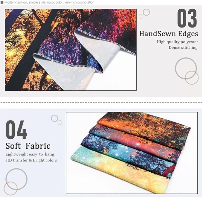 - Premium Material: This colorful forest tapestry is made of 100% high quality polyester, which is soft, portable, dry quickly, light weight, easy to hang and skin-friendly.