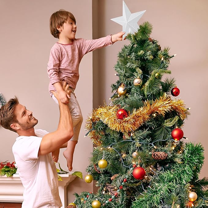 - Snowy Splendor – This 8-inch white tree topper crowns 6-8ft Christmas trees with pure winter elegance, creating a fresh, frost-kissed focal point