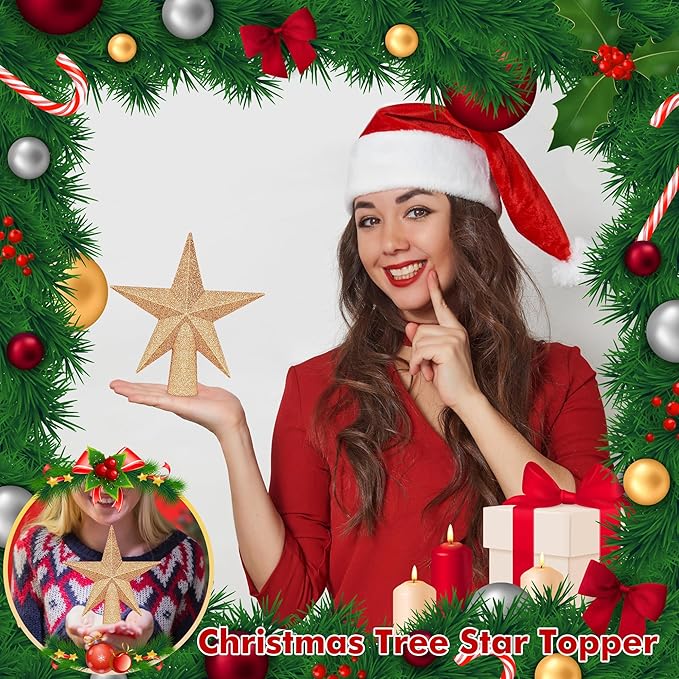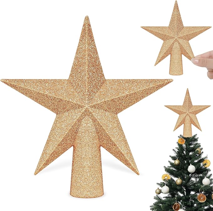 Christmas Tree Decoration, 6" Champagne Christmas Tree Topper Star Accessories, Xmas Glitter 3D Bethlehem Tree Ornament, Waterproof Holiday Christmas Tree Topper Star Decorations for Home Decor