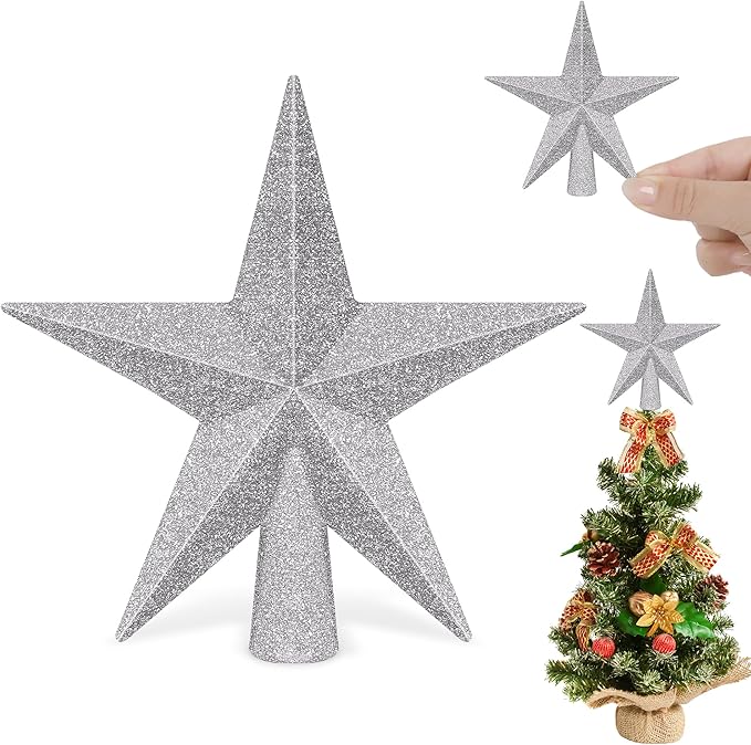 1PCS Tree Topper, 4" Star Christmas Tree Topper Glitter Sliver, Mini Bethlehem Star Xmas Shatterproof Tree Topper Decorations, Waterproof Christmas Decor for Holiday Home Indoor & Outdoor Ornament
