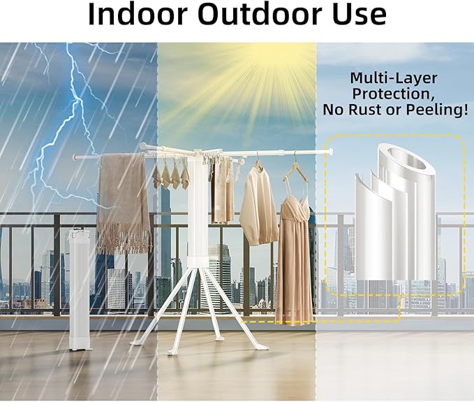 - 【Superior Quality & Stability】Constructed from durable, lightweight carbon steel and stainless steel, these drying rack clothes support up to 88 pounds with ease. Their reinforced bases and four non-slip feet ensure steadfast stability. A robust five-layer anti-rust coating protects these laundry racks for drying clothes, promising long-lasting performance. They are perfect as clothes rack drying solutions for all your garments