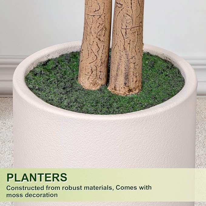 - ✅ Planter Included - Our Ficus tree comes with a 7 inch White Planter ,save extra purchase of planter.The artificial Ficus tree is pre-assembled in a sturdy plastic planter for easy placement and care.
