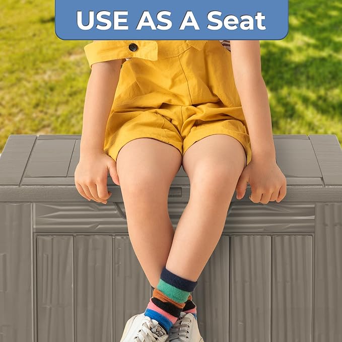 - Weatherproof Resin for Year-Round Use. Durable, waterproof resin, this deck box resists rain, sun, and UV exposure. Ideal for all-season use, it won’t peel, rust, or warp like wooden or metal boxes—keeping your items protected outdoors.