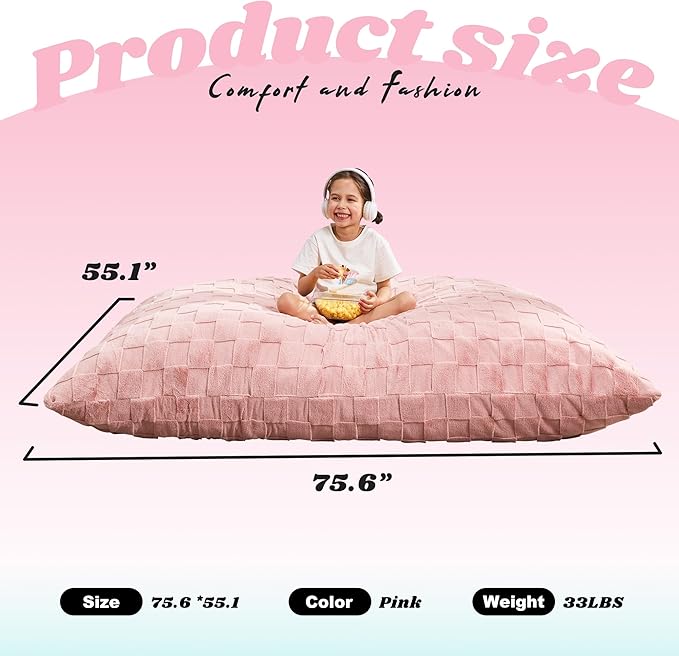 Hobestluk 3 in 1 Bean Bag Chair Giant Bean Bag Chairs for Adults with Plaid Cover Convertible Bean Bag Floor Cushion with Machine Washable Cover for Living Room (Plaid Pink)