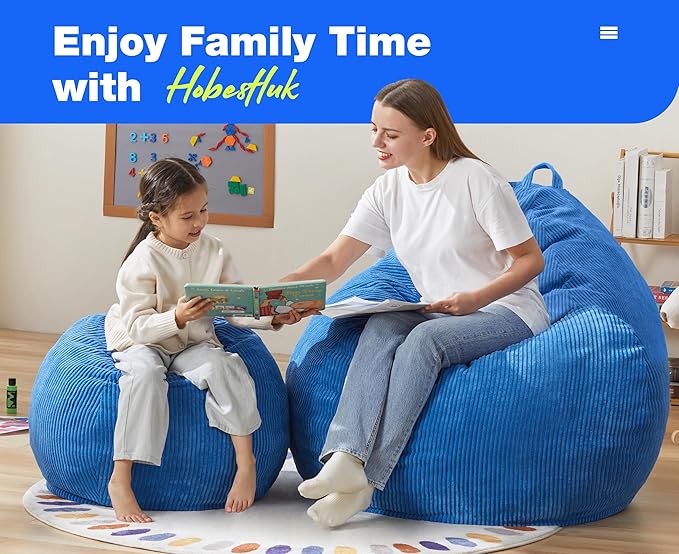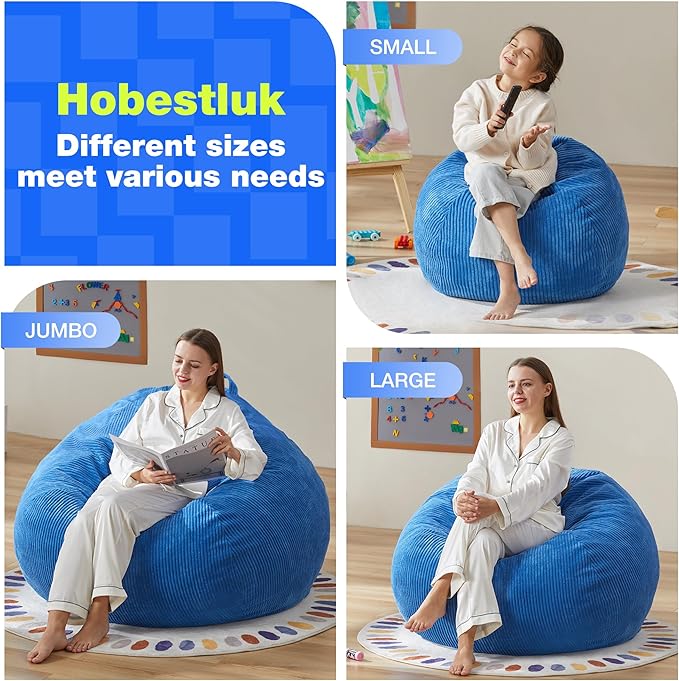 - Creative Design: Hobestluk large bean bag chair looks like a tear drop with a wide base that narrows towards the top. There are six colors for you to choose in this design. Plus, our bean bag is made of comfy textured corduroy fabric and high-density memoy foam, which feels like you're sinking into a cloud.