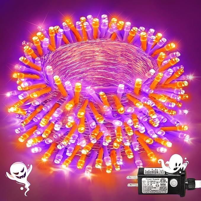 250 LED Orange and Purple Halloween Lights 82 FT Halloween Lights Indoor Outdoor Clear Wire with 8 Modes, Plug in Waterproof Christmas Light for Tree Party Bedroom Thanksgiving Decorations