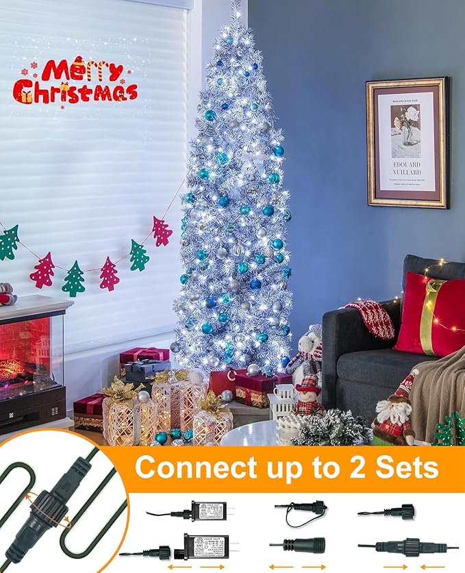 - 【Energy Saving LED Christmas Lights】This plug in twinkle light is UL safety certified, and the low 29V voltage ensures low power consumption and low electricity bills for the LED lights. The green wires string lights blend in with the natural environment during the day and are ideal for decorating Christmas trees and wreaths.