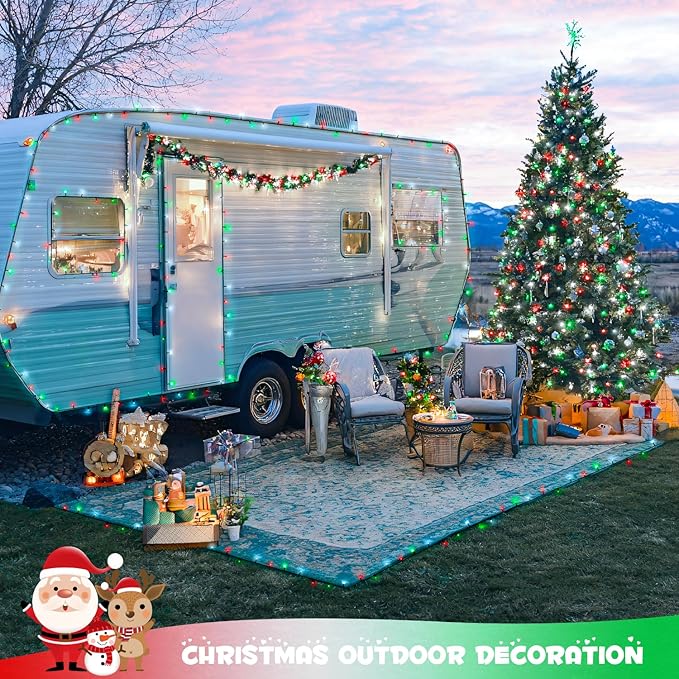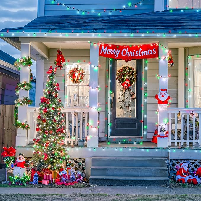 - Waterproof & Safety: We can't tell if it will rain on Christmas, so let's prepare a waterproof red white green solar Christmas lights. The panic is all someone else's! All components of our Christmas lights, including light beads, light wires, and solar panels are IP44 waterproof, so no worries about the weather
