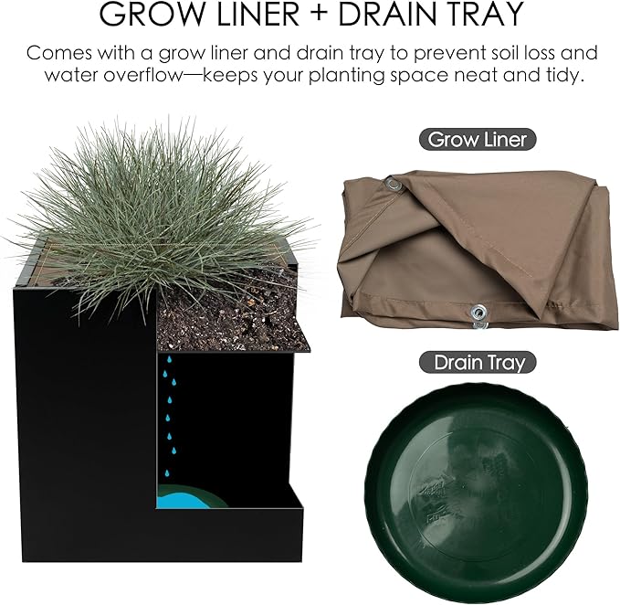 - Built-In Drainage System: Center drainage hole in the partition panel allows excess water to flow through easily. Includes a breathable soil liner to keep soil in place while promoting airflow and drainage. A plastic saucer catches excess water, helping to prevent overwatering and messy spills. This smart design supports healthy plant growth and keeps your space clean and organized.