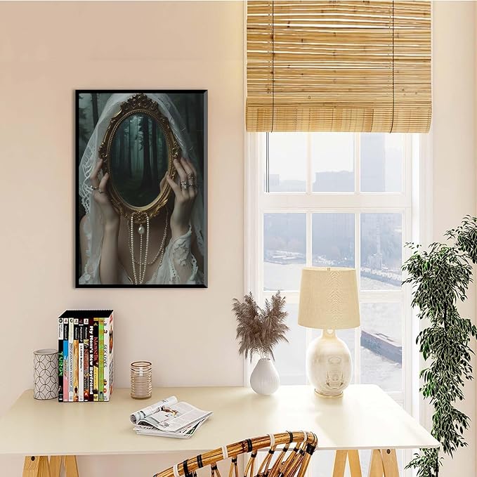Mirror face covering dark art poster print melancholy gothic painting vintage feminine print victorian style decoration antique art8x12in Metal blackFramed