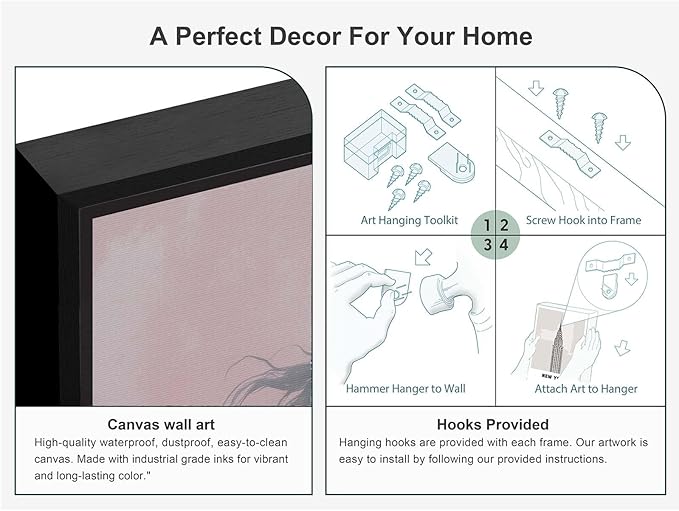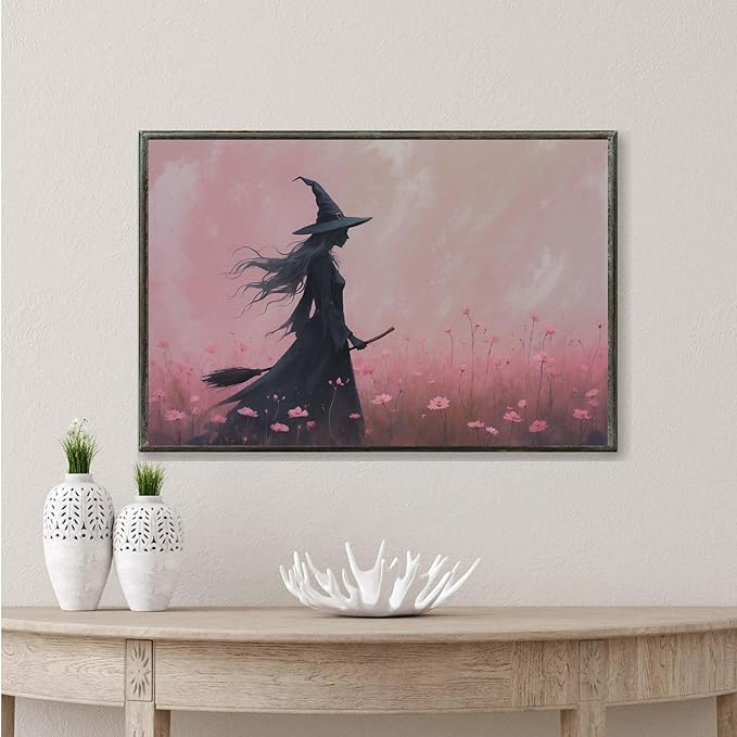 JFHCQJPK Witch in the pink sea of flowers Halloween prints weird flowers wall art silhouette painting fashionable romantic decoration suitable for bedroom16x24in Metal blackFramed