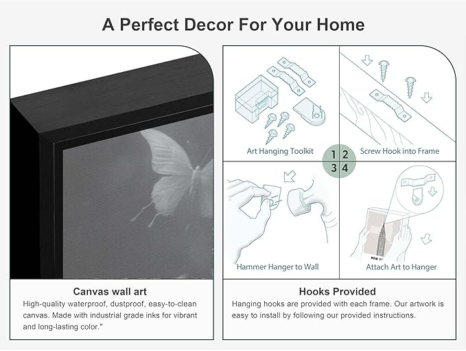 JFHCQJPK Vintage Gothic Feminine Canvas Wall Art Print Butterfly Poster Moody Female Wall Art Retro Artwork Dark College Decor for Home Bedroom16x24in Metal blackFramed