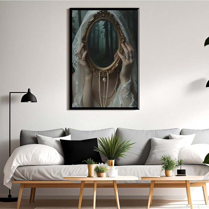 Mirror face covering dark art poster print melancholy gothic painting vintage feminine print victorian style decoration antique art24x36in Metal blackFramed