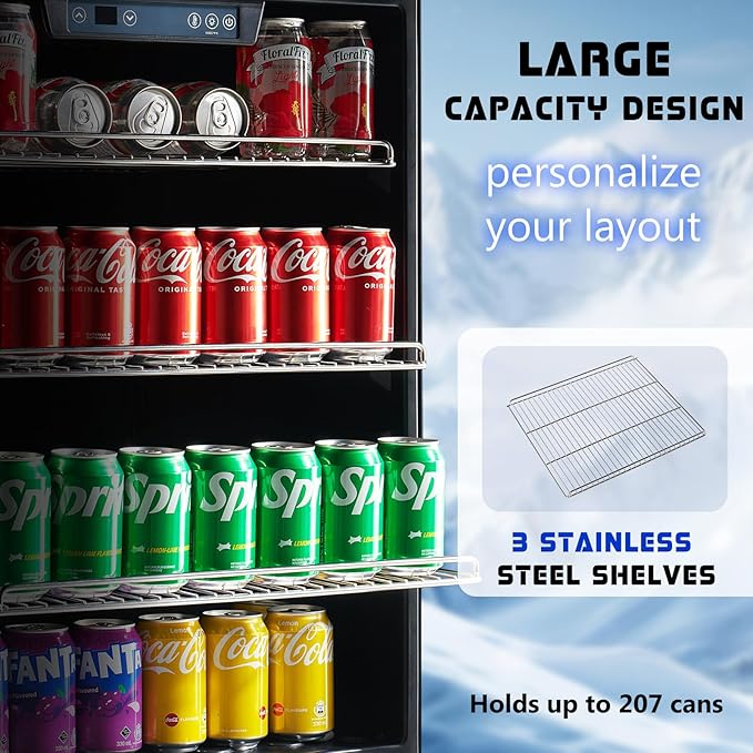 - Customizable Storage Design: With adjustable shelves and doors that can be freely installed left or right, the beverage refrigerators adapt to your needs. The durable 304 stainless steel door construction adds elegance and longevity.