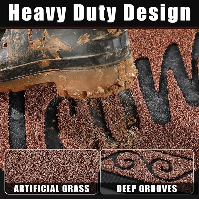 - 【Perfect Dirt Trapper】: Yimobra welcome mat surface is made of high-quality artificial grass, compared to other common materials, this can be more effective in trapping dirt, dust, mud, sand, or other debris and preventing them from entering the room, thus keeping your home clean and tidy. The Sturdy rubberized beveled edges also trap water, preventing excess water from splashing onto the floor!