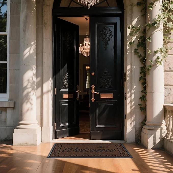 Yimobra Welcome Mat, Heavy Duty Sturdy Door Mats for Home Entrance Outdoor Indoor, Front Doormat for Outside Patio Floor Entry Porch Garage Office, Waterproof, Low Profile, 47 x 24, Coffee
