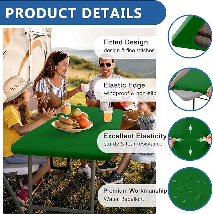 - Water-Repellent & Elastic Edge Design: This rectangle fitted stretch table clothes features an elastic edge design that securely grips the table, preventing shifting or sliding, and eliminating worries about being blown away. It ensures a perfect fit for your table. Made of stretch spandex, it can be easily stretched in all directions, offering both non-slip and windproof properties, providing stable support for your events.