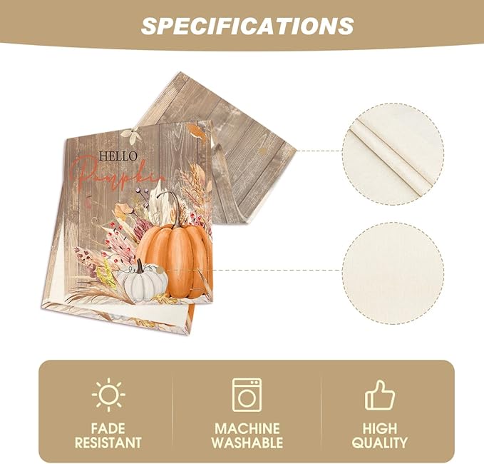 Artoid Mode Wood Hello Pumpkin Leaves 210 GSM Fall Table Runner, Seasonal Autumn Kitchen Dining Table Decoration for Home Party Decor 13x72 Inch