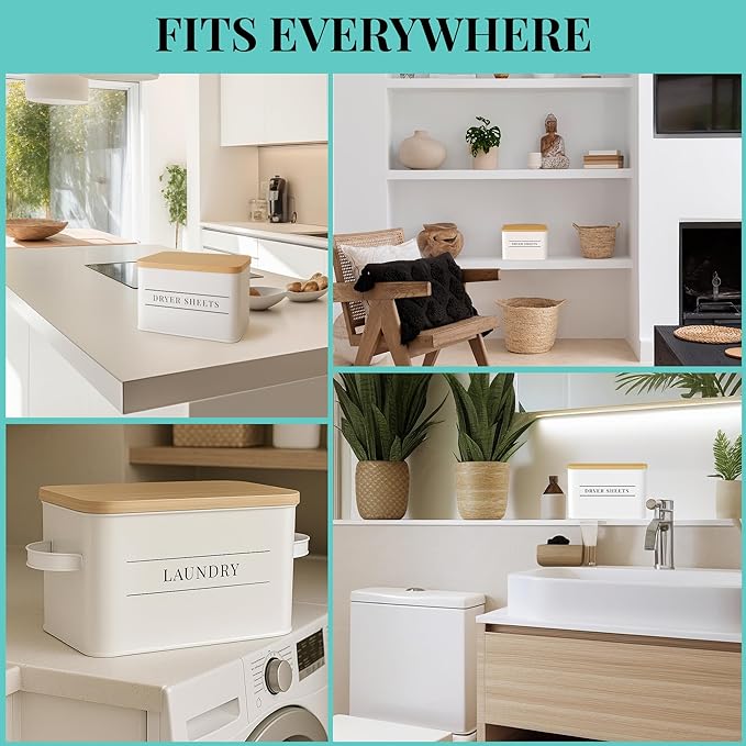 - Set of Two for Coordinated Charm – Includes two matching bins with secure-fitting lids, ideal for holding dryer sheets, scent boosters, clothespins, or other laundry essentials.
