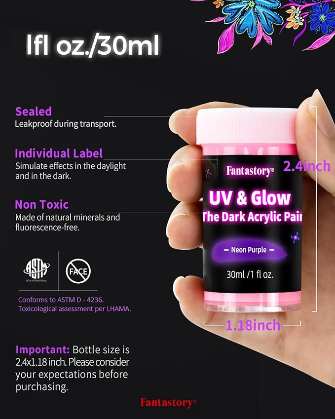 - High Quality: Fantastory glow in dark paint is AST.M certified. Its good viscosity, exceptional smoothness, and glossiness offer a delightful way to explore the magic of art. Overall, this essential glow paint set will greatly unleash your imagination.