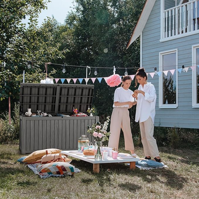 - Multifunctional Applications:This deck box is not only a storage solution, but also a versatile piece of outdoor furniture. With its 880bls weight capacity, you can use it as extra seating for outdoor gatherings and comfort, or as a patio table for your drinks and snacks. Its multi-functional design gives you more flexibility and variety in your outdoor space