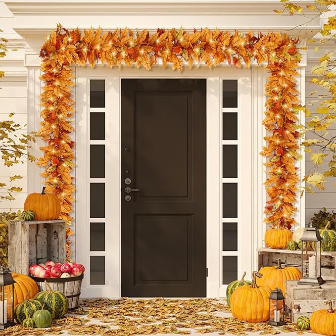 - High-Quality, Durable Materials:Made with high-quality plastic and silk fabric, the fall leaves garland with lights are not only visually appealing but also durable and lightweight. The flexible stems ensure you can easily shape and arrange the garland to suit your home decor, whether indoors or outdoors